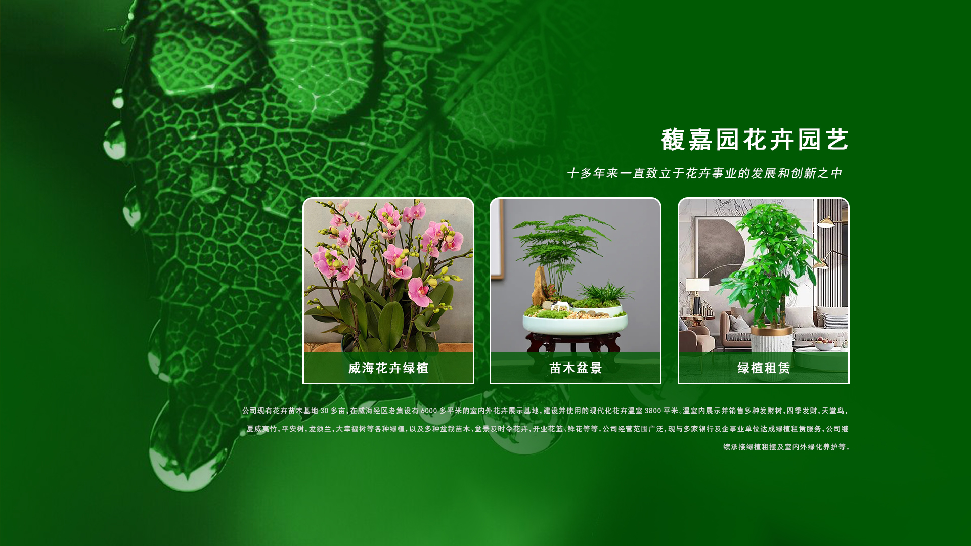 公司現(xiàn)有花卉苗木基地30多畝,在威海經(jīng)區(qū)老集設(shè)有6000多平米的室內(nèi)外花卉展示基地,建設(shè)并使用的現(xiàn)代化花卉溫室3800平米